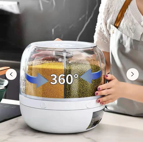 6 Grid Food Storage Dispenser Rice & Grain Storage Container 360°