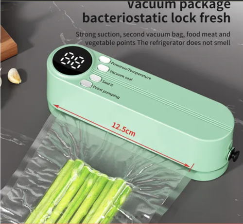 Green Mini Wireless Vacuum Sealer - Rechargeable Smart Food Sealer for Home Use | Portable Kitchen Plastic Sealer for Food Storage | Suitable for Home and Business Use